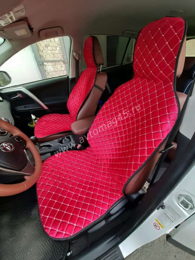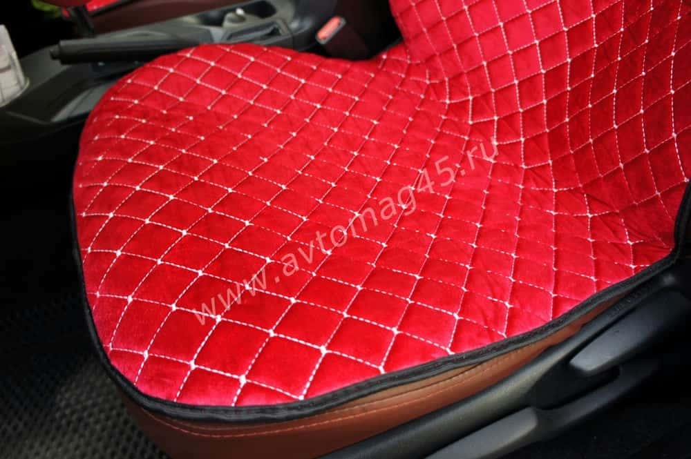 Автотренд Накидки на сиденье на силиконе без боков велюр красный 2шт