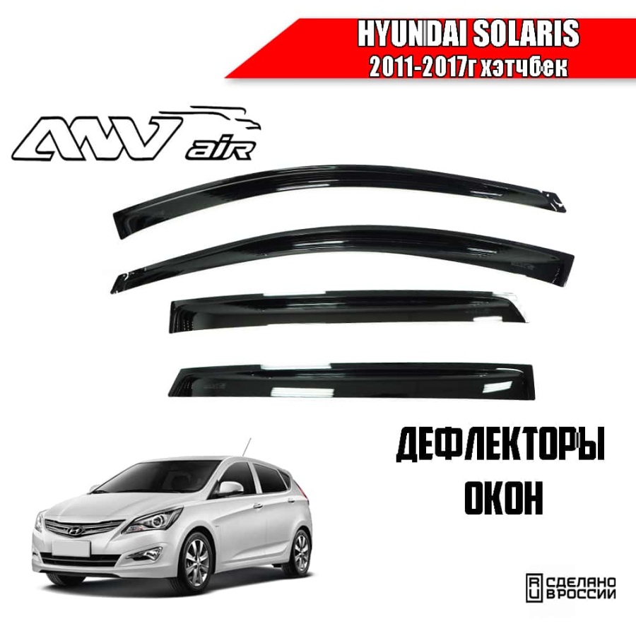 ANVair дефлекторы окон Hyundai Solaris Хендай Солярис хэтчбек 2011-2017г комплект 4шт