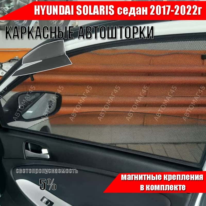 Шторкофф каркасные шторки на магнитах Hyundai Solaris Солярис cедан 2017-2022г передн 2шт станд 5%