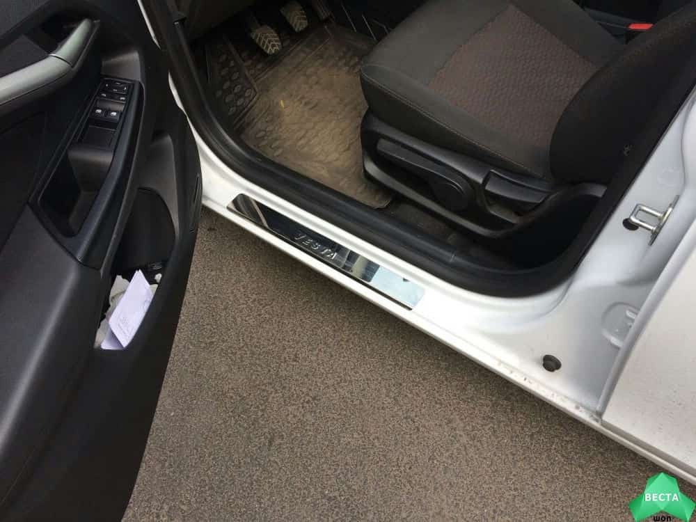 LIDER Накладки на пороги Лада Vesta Веста ВАЗ 2180 седан 4 шт нержавейка