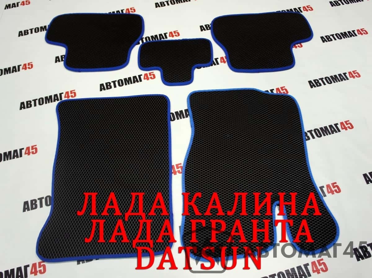 EVA ЭВА коврики в салон Лада Kalina Granta Datsun On-do Mi-do черные синий кант рис ромб компл 5шт