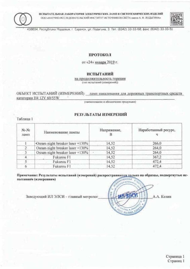 Fukurou F1 лампа H11 12V 55W (115W) Корея 2шт