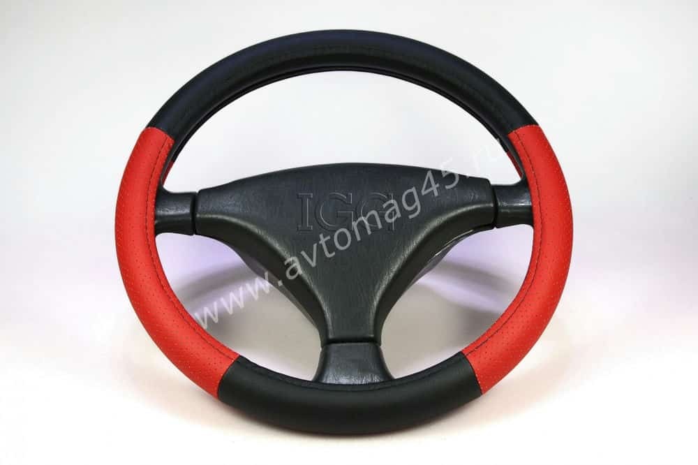IGG 303 оплетка руля экокожа черный красный