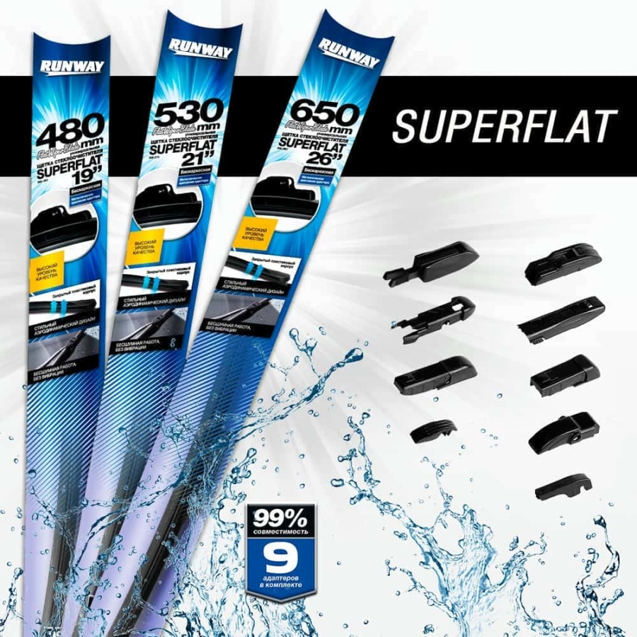 Runway щетка стеклоочистителя Superflat бескаркасная графит 10 адаптеров 530мм
