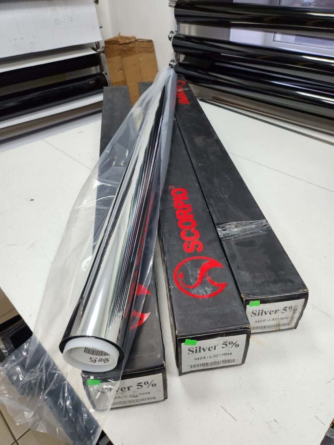 Scorpio тонировочная пленка зеркальная silver 5% 1,5м х 1м Тайвань от 0,5м