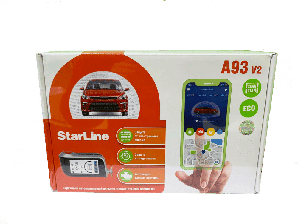 StarLine A93 V2 ECO 2Can+2Lin сигнализация 1 брелок автозапуск двусторонняя связь сирена гар 1 год