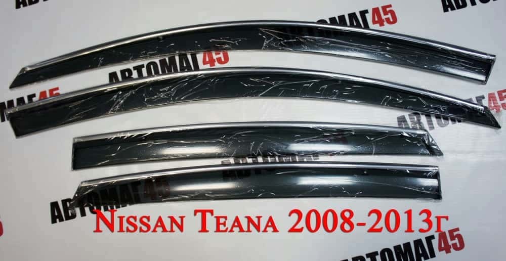 WIND дефлекторы окон Nissan Teana Ниссан Теана 2008-2013г дымчатые хромированный молдинг компл 4шт