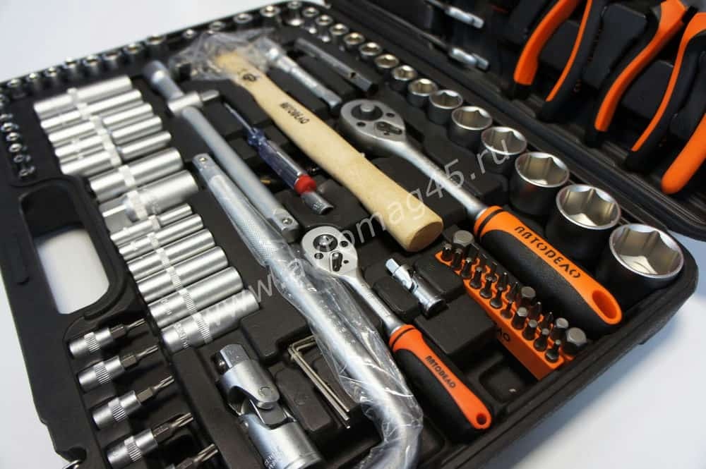 Автодело набор инструментов 119 предметов 1/2" 1/4" 1/8"