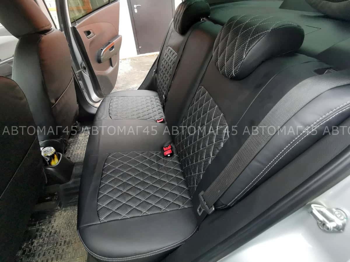 Авточехлы Chevrolet Aveo Шевроле Авео 2005-2012г экокожа черная серая нить ромб