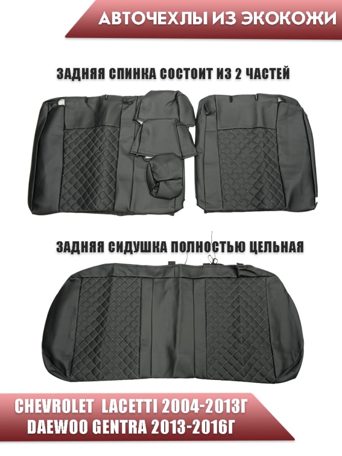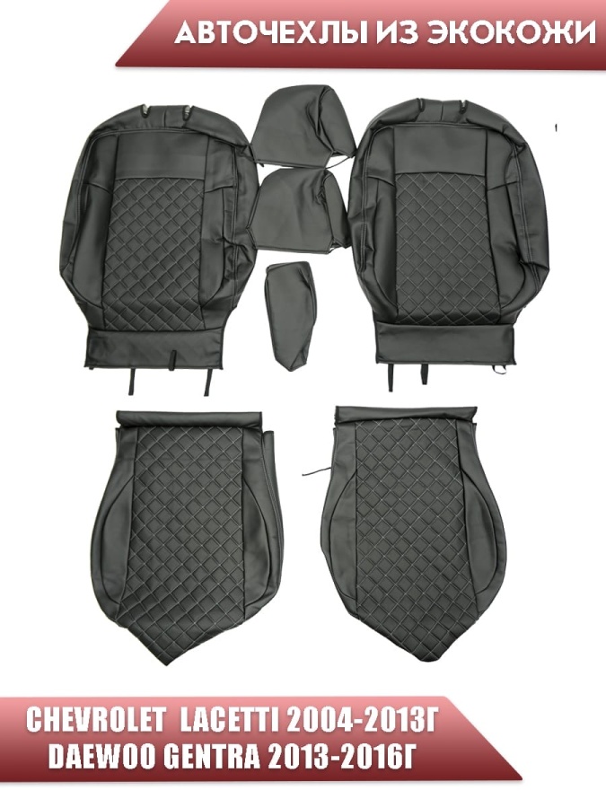 Авточехлы Chevrolet Lacetti Лачетти Daewoo Gentra Дэу Джентра экокожа черная серая нить ромб
