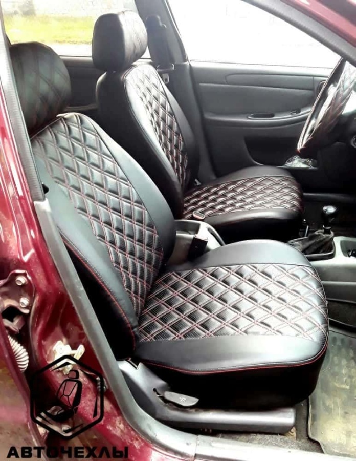 Авточехлы Daewoo Nexia Дэу Нексиа 1994-2008г экокожа черная красная нить ромб