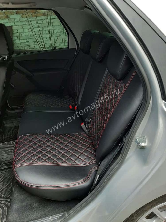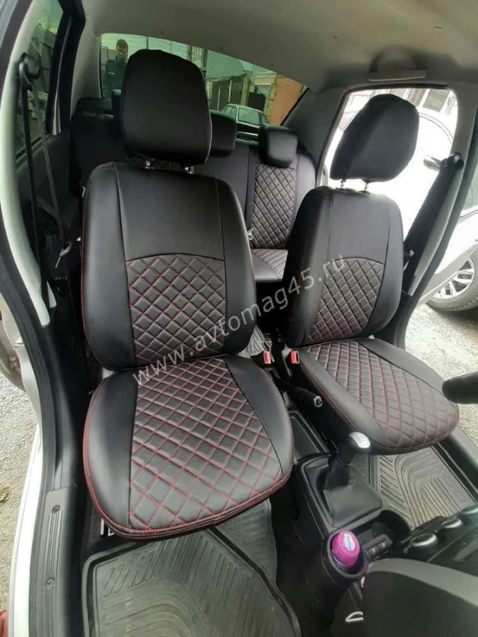 Авточехлы Datsun Датсун 1/1 2/3 экокожа черная красная нить ромб