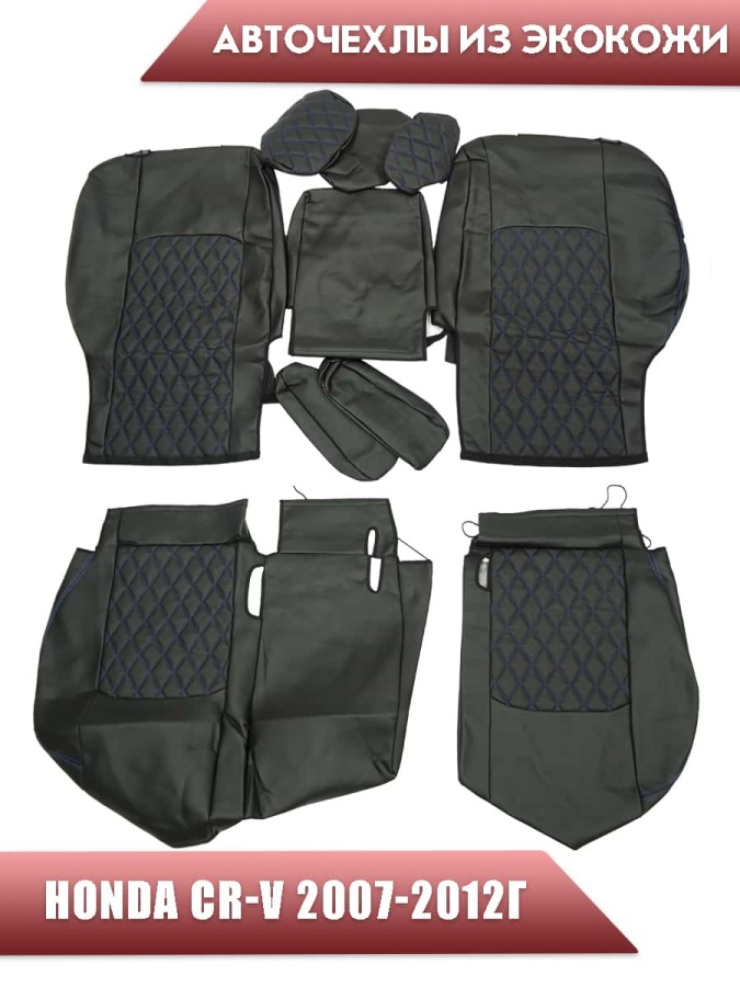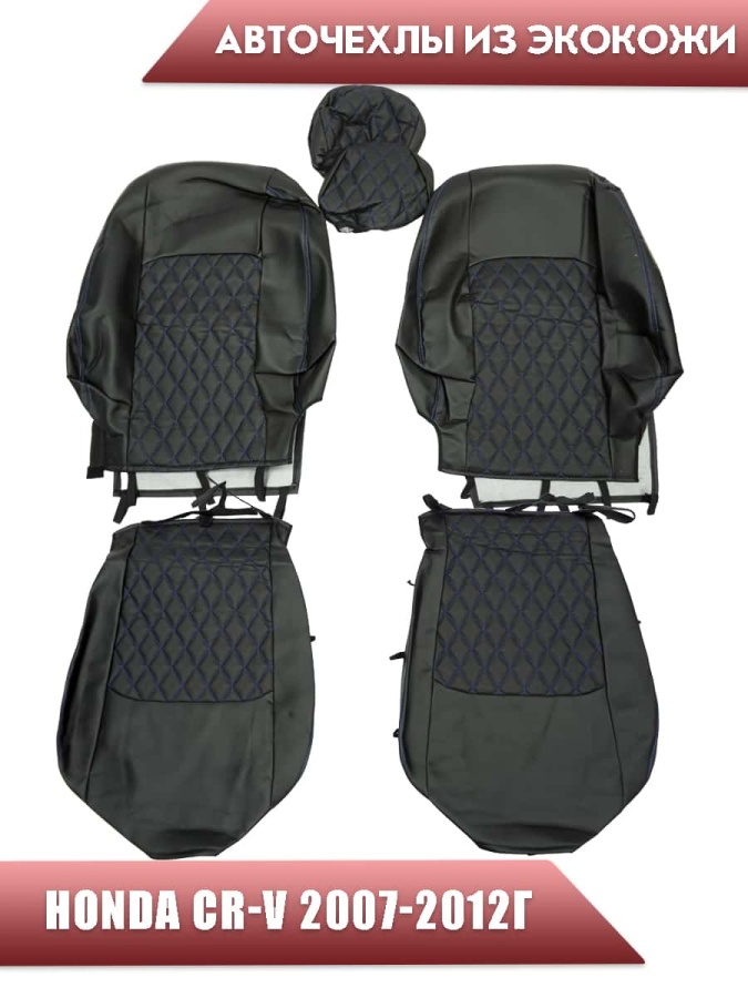 Авточехлы Honda Хонда CR-V 2007-2012г экокожа черная синяя нить ромб