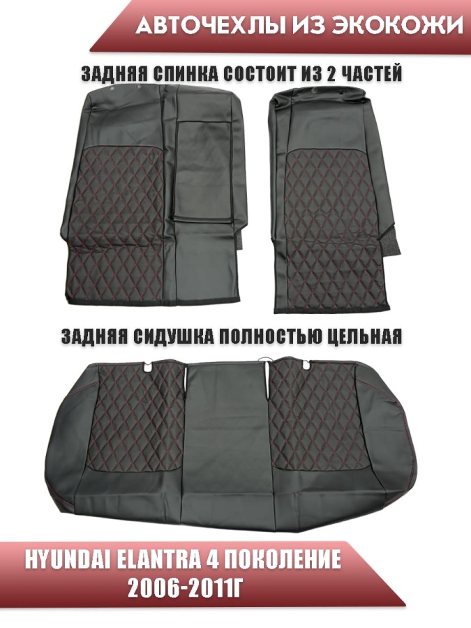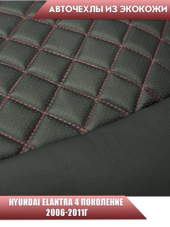 Авточехлы Hyundai Elantra IV пок Хендай Элантра 4 пок 2006-2011г экокожа черная красная нить ромб