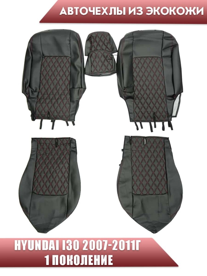 Авточехлы Hyundai I30 Хендай 2007-2011г 1 поколение экокожа черная красная нить ромб