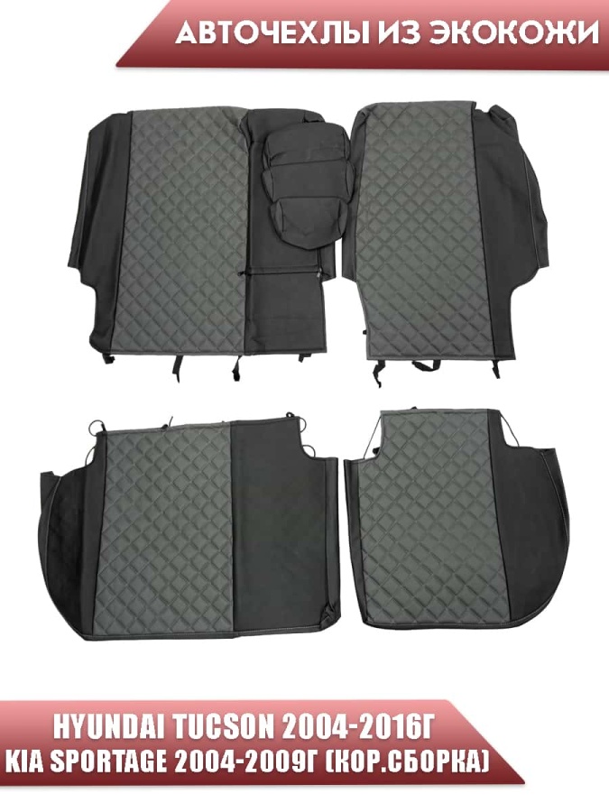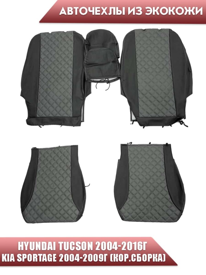 Авточехлы Hyundai Tucson 04-16г подходит Kia Sportage 04-09г (кор.сборка) экокожа черная сер.н ромб