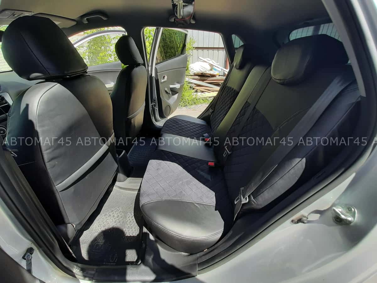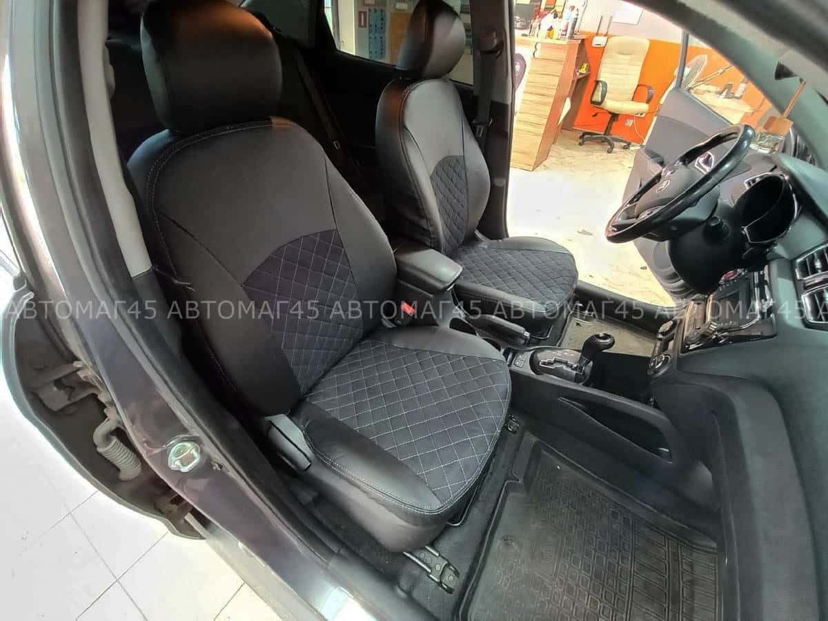 Авточехлы Kia Rio Киа Рио 2011-2017г Hyundai Solaris 2011-2017г экокожа алькан черная сер.нить ромб