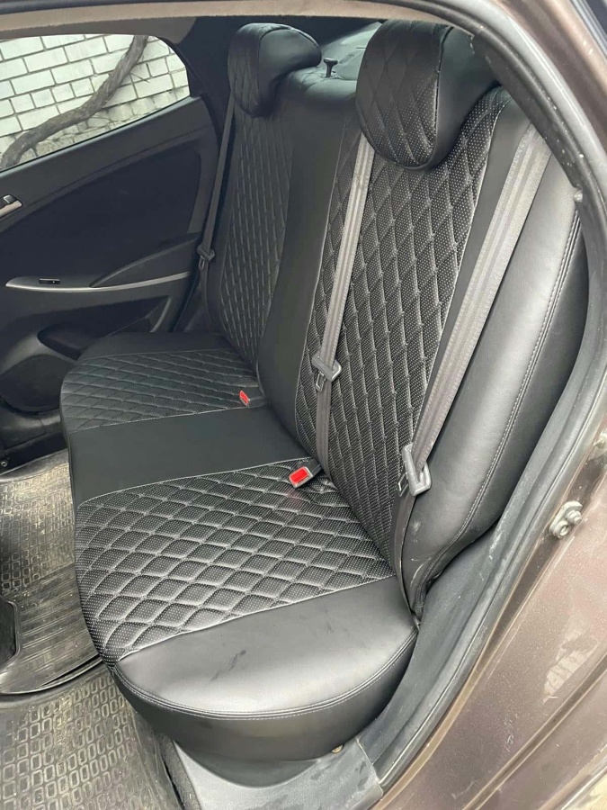 Авточехлы Kia Rio Киа Рио 2011-2017г Hyundai Solaris 2011-2017г экокожа черн ромб черн.нить Барс