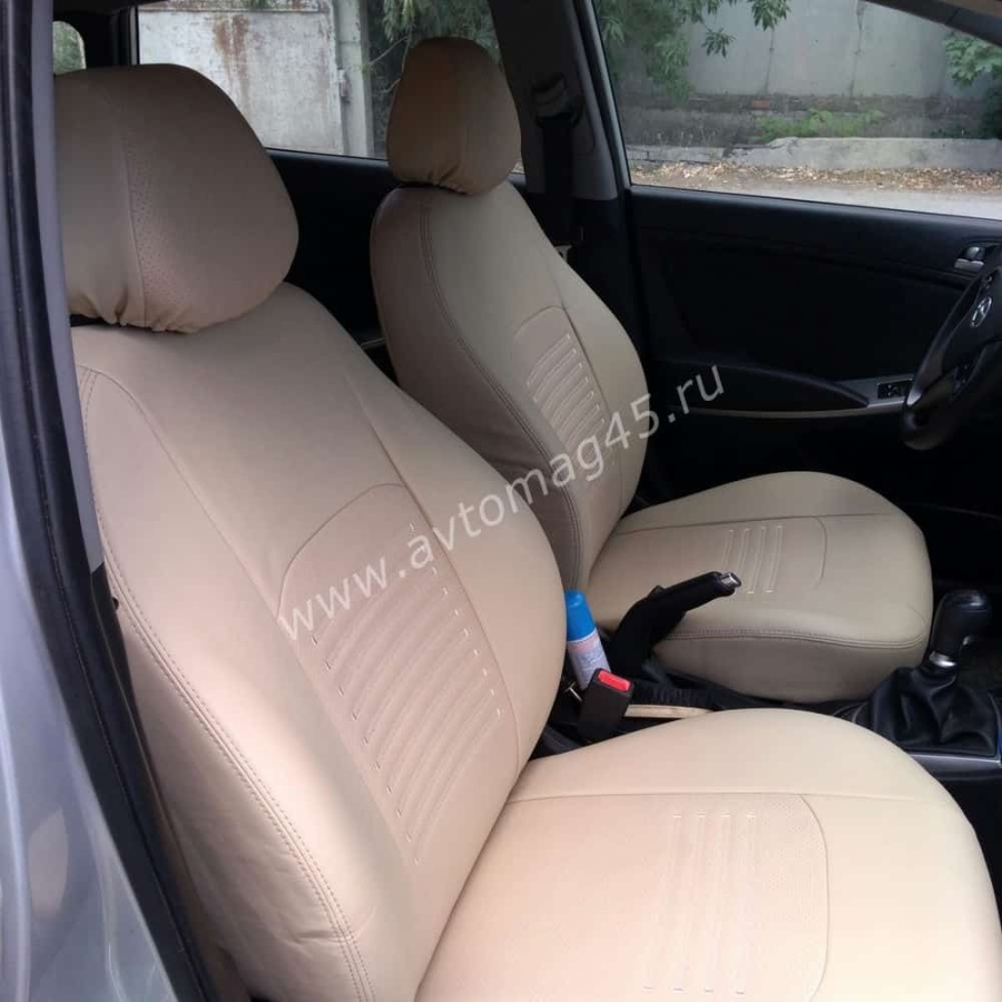Авточехлы Kia Rio Киа Рио 2011-2017г Hyundai Solaris 2011-2017г экокожа бежевый Седан