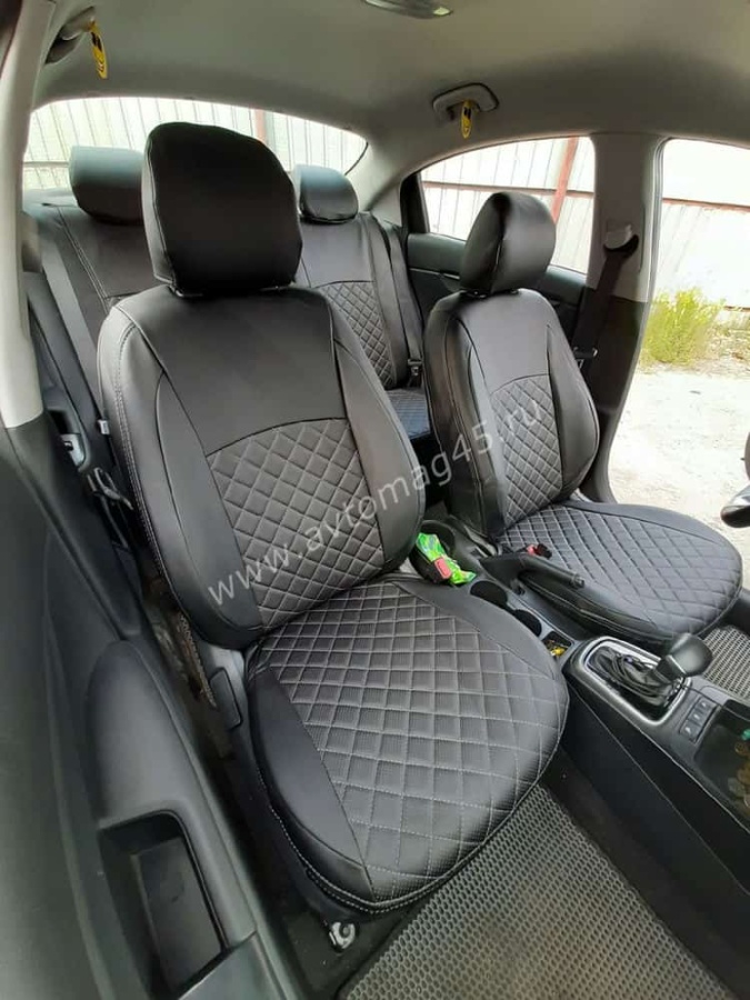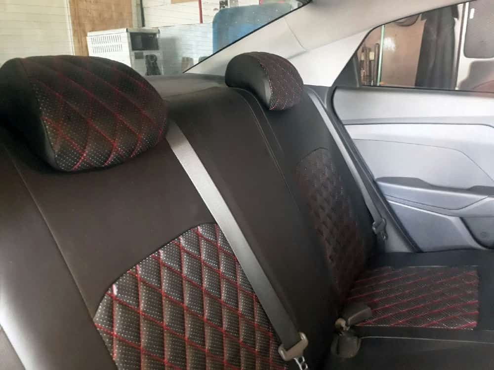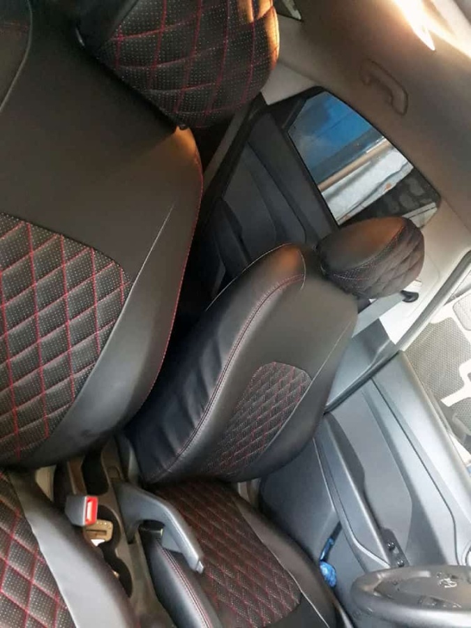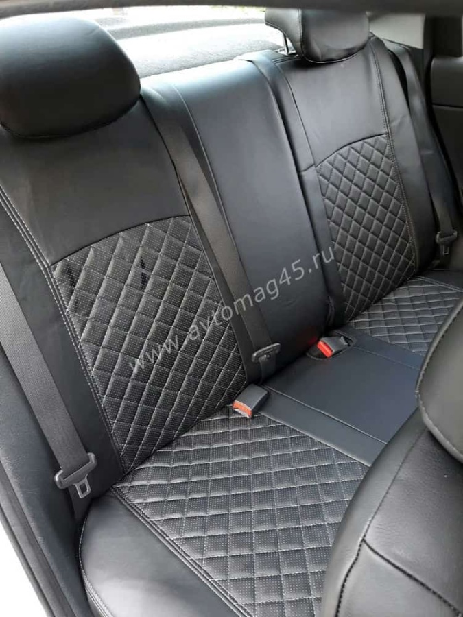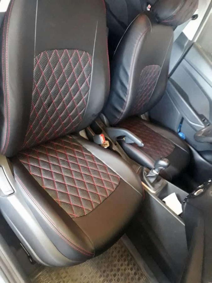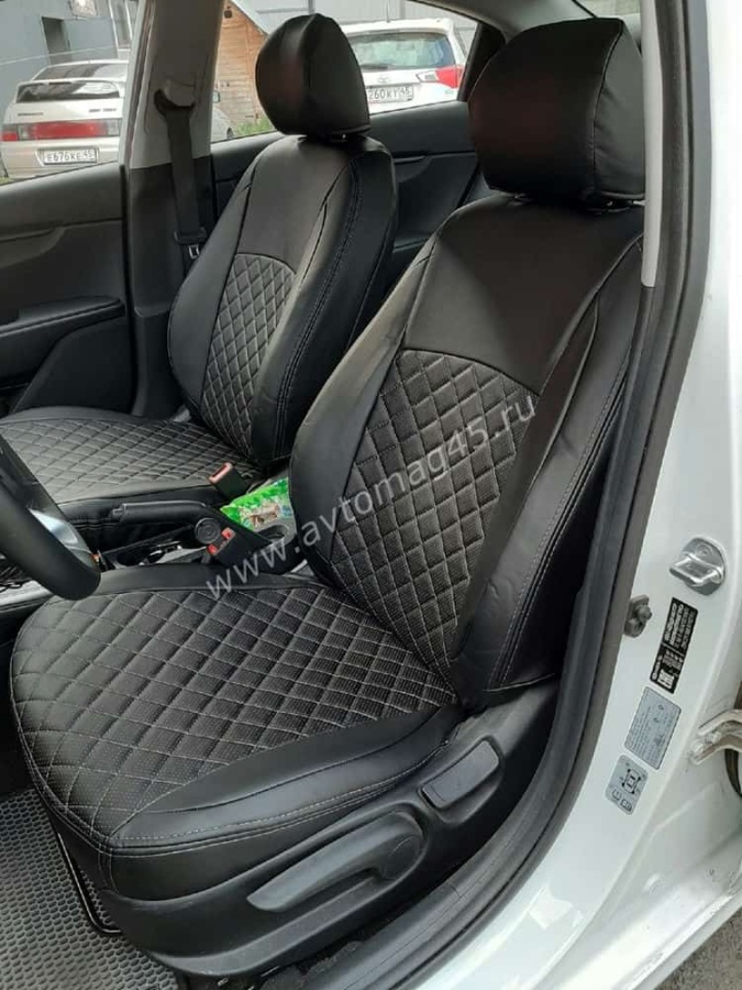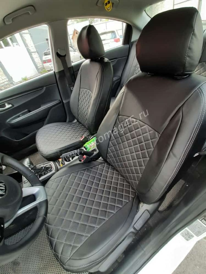 Авточехлы Kia Rio с 2017г Rio X-Line с 2017г Hyundai Solaris c 2017г экокожа черная красн.нить ромб