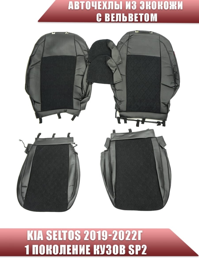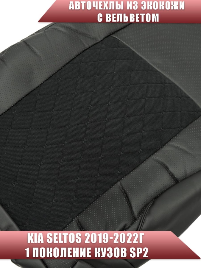 Авточехлы Kia Seltos Киа Селтос 2019-2022г экокожа вельвет черная серая нить ромб Maximal