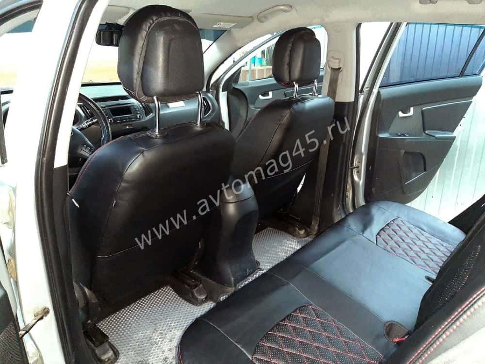Авточехлы Kia Sportage Киа Спортаж 2010-2016г Hyundai ix35 9-15г экокожа черная серая нить ромб
