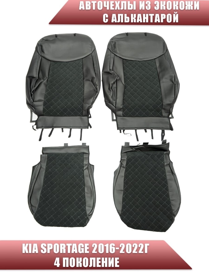 Авточехлы Kia Sportage Киа Спортаж 2016-10.2022г 4 пок экокожа алькантара черная серая нить ромб