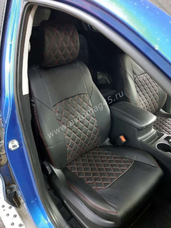 Авточехлы Kia Sportage Киа Спортаж 2016-10.2022г 4 пок экокожа черная красная нить ромб