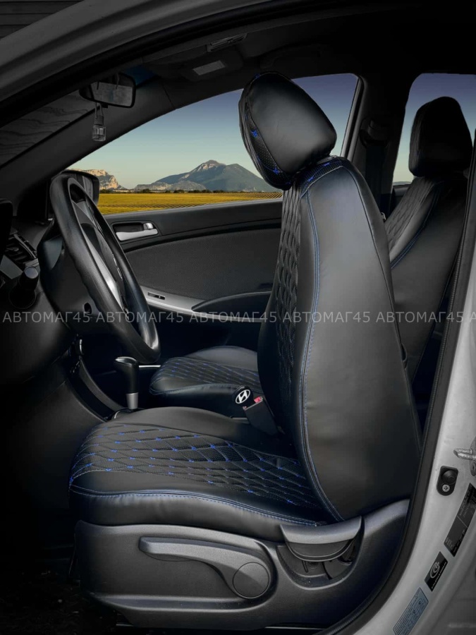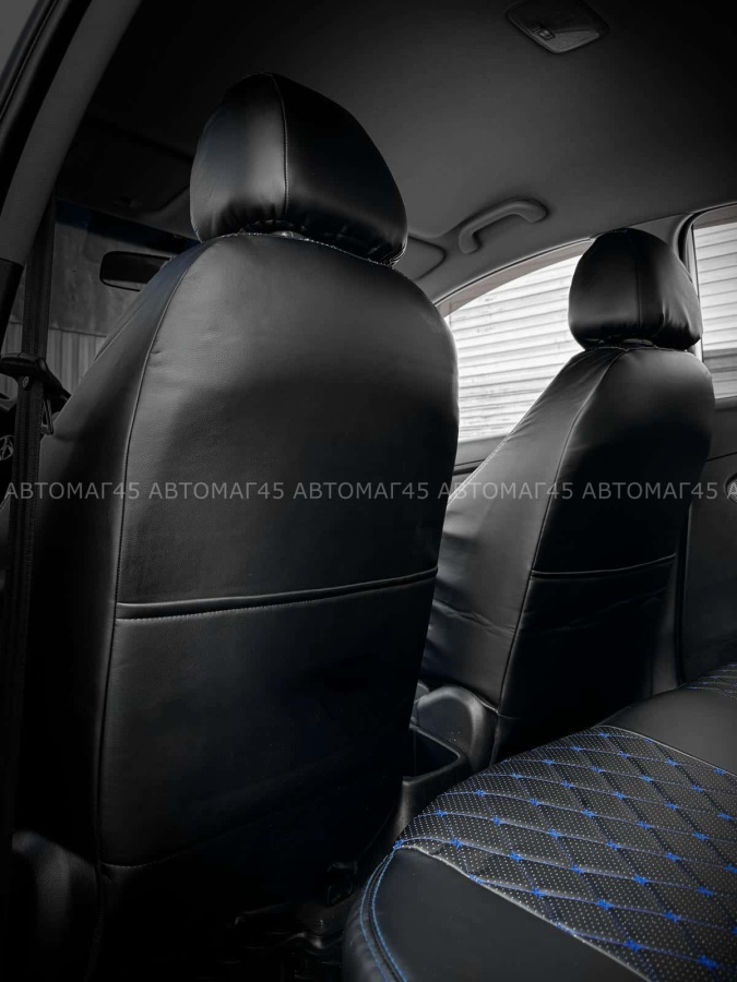 Авточехлы Lada Vesta Лада Веста седан SW SW Cross экокожа черный ромб синяя нить Офис