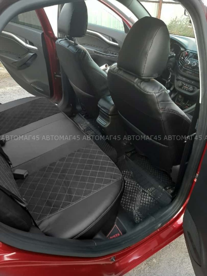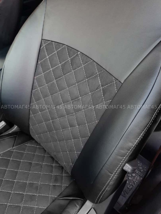 Авточехлы Lada Vesta Лада Веста седан SW SW Cross экокожа алькантара черная с серой ниткой ромб