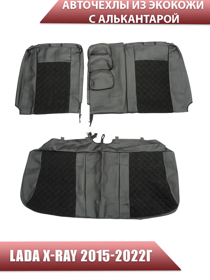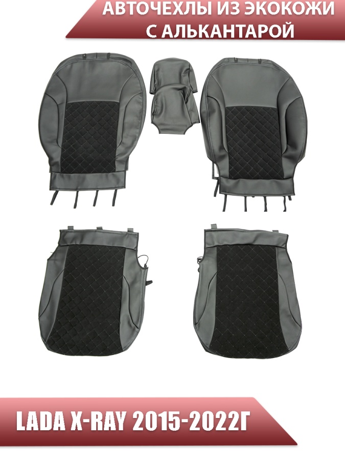Авточехлы Lada X-Ray Лада Х-Рей экокожа алькантара черная с серой ниткой ромб