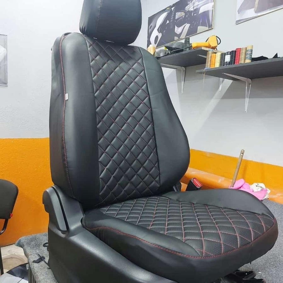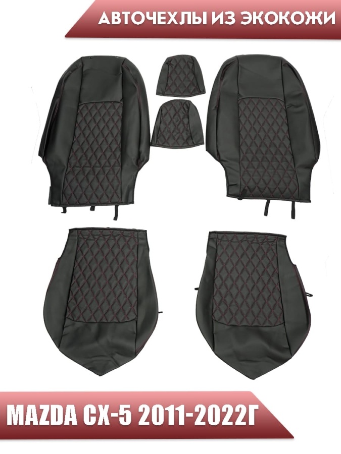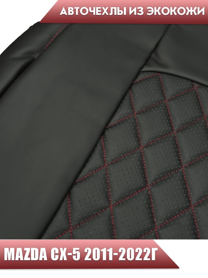 Авточехлы Mazda CX-5 Мазда СХ-5 низ 1/1 верх 3/3 экокожа черная с красной ниткой ромб
