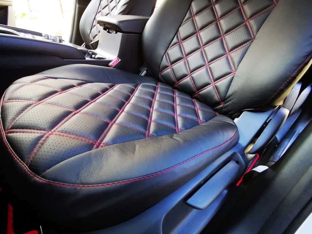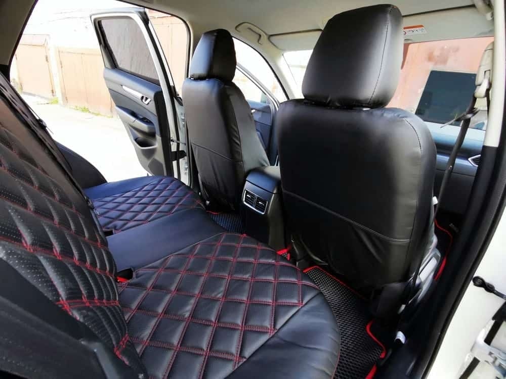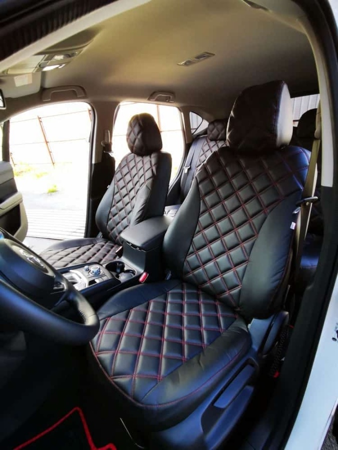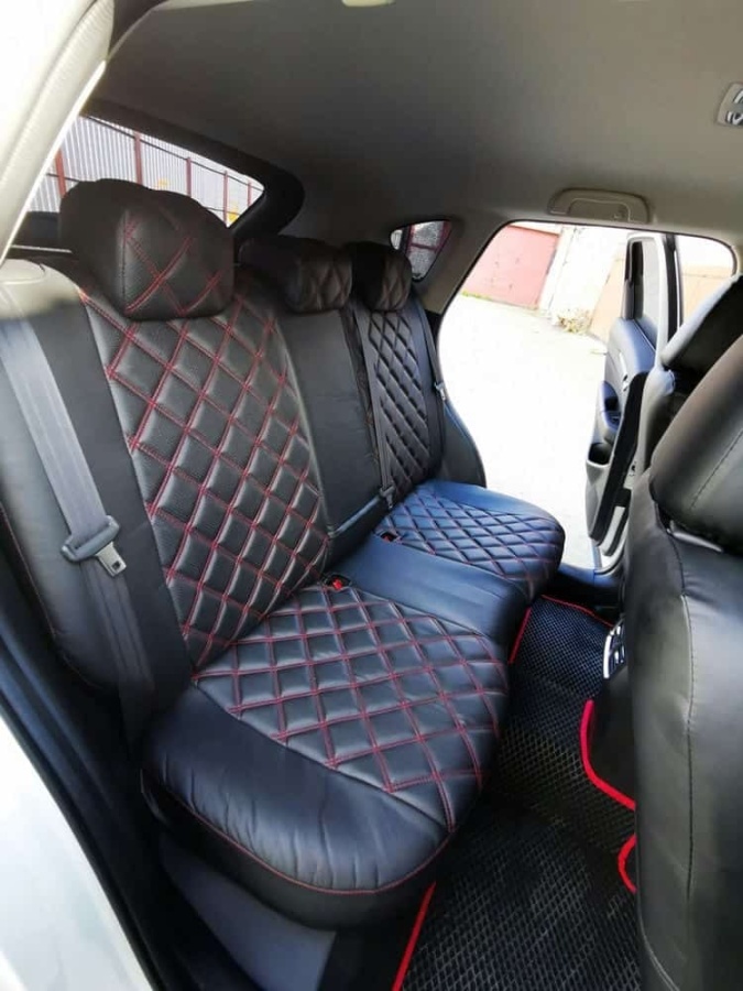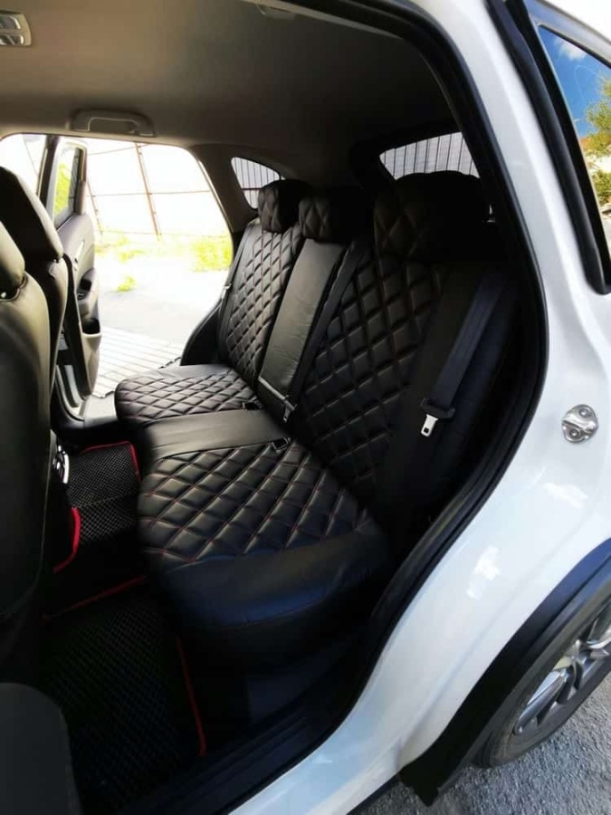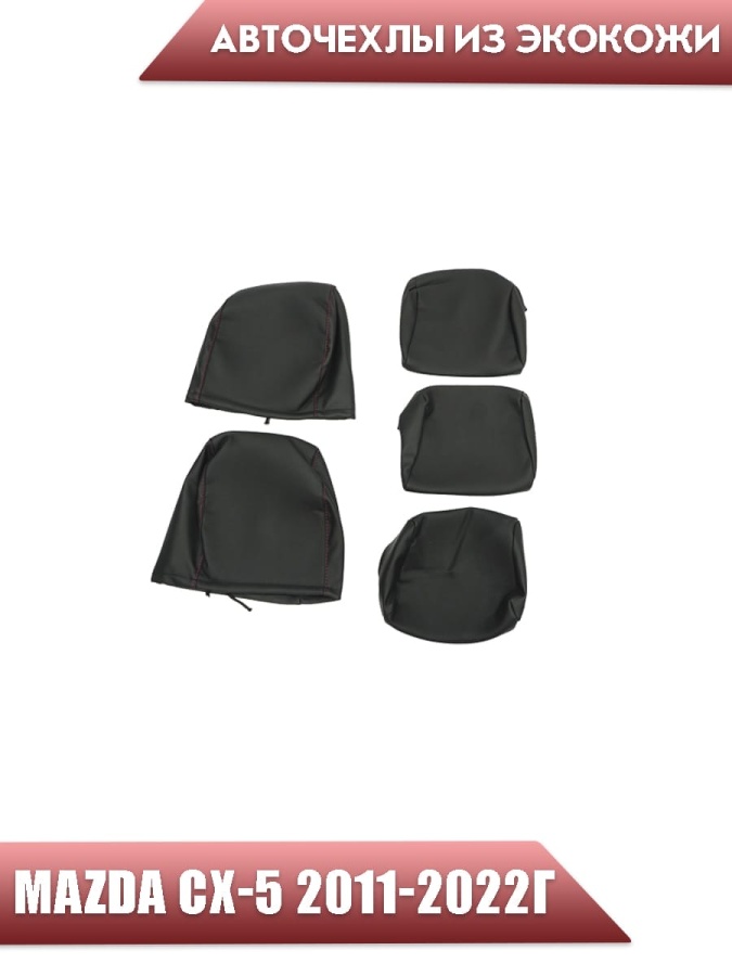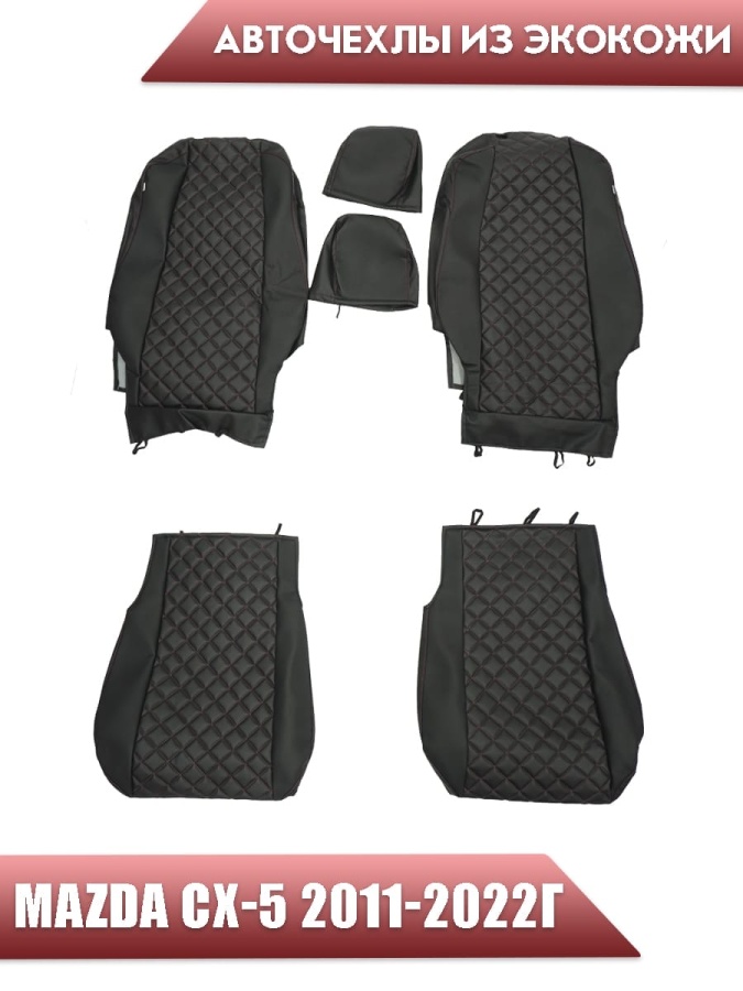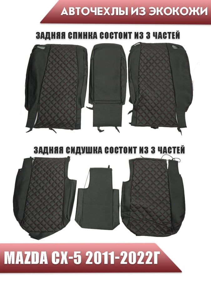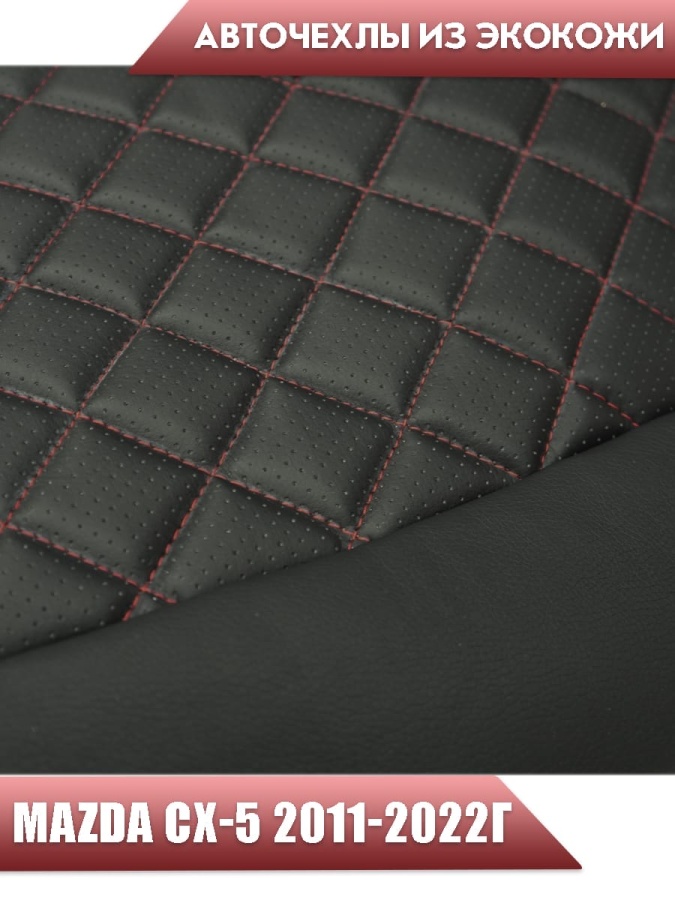 Авточехлы Mazda CX-5 Мазда СХ-5 низ 3/3 верх 3/3 экокожа черная красная нить ромб
