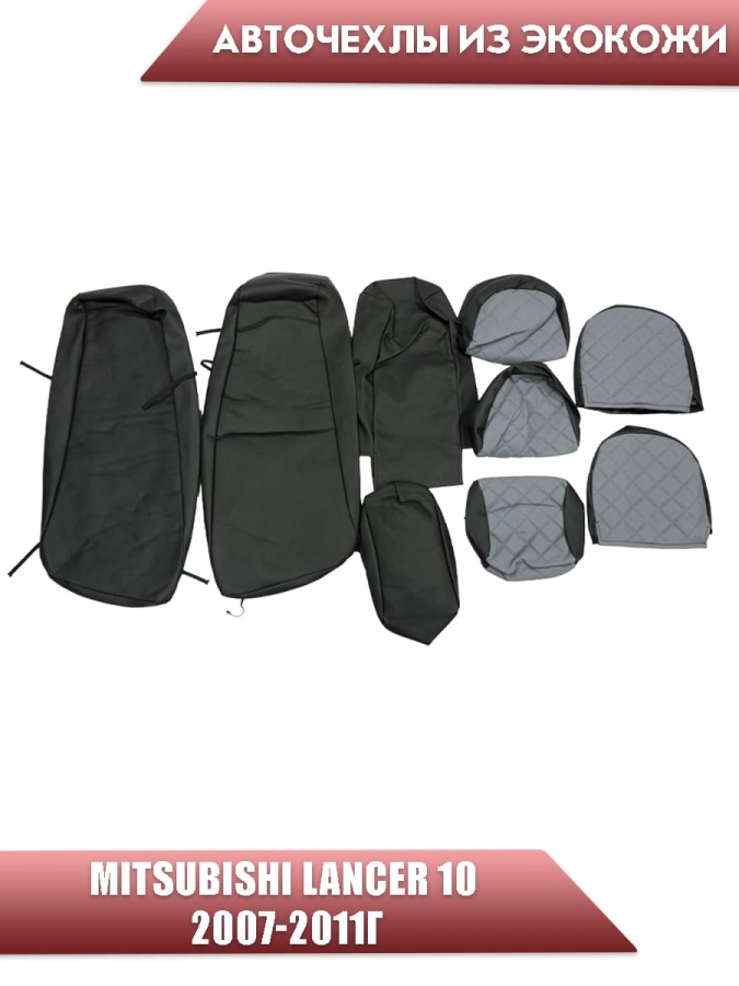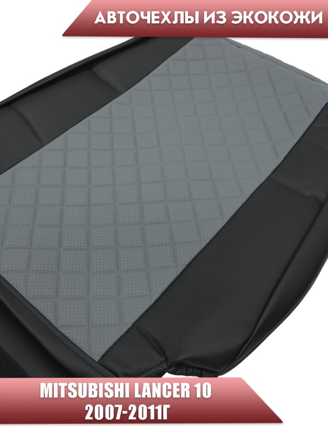 Авточехлы Mitsubishi Lancer 10 Мицубиси Лансер 10 2007-2011г экокожа черно-серая ромб