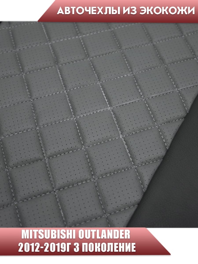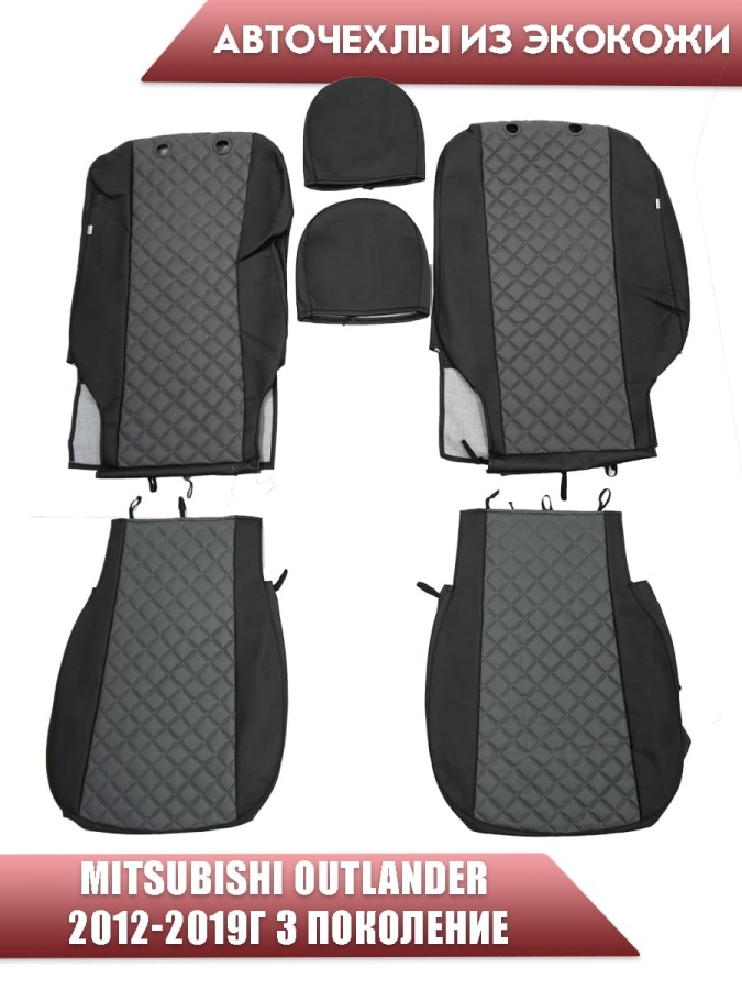 Авточехлы Mitsubishi Outlander Мицубиси Аутлендер 3 пок 2012-2019г экокожа черно-серый ромб
