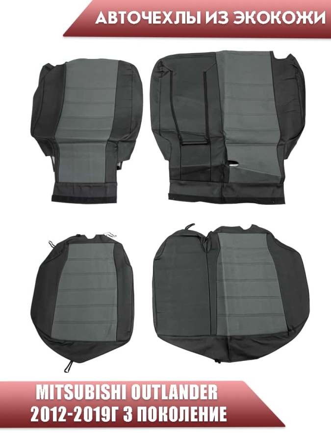 Авточехлы Mitsubishi Outlander Мицубиси Аутлендер 3 пок 2012-2019г экокожа черно-серая