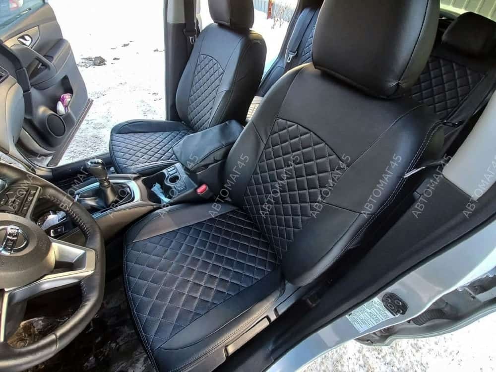 Авточехлы Nissan Qashqai Ниссан Кашкай J11 2014-2022г экокожа черная красная нить ромб