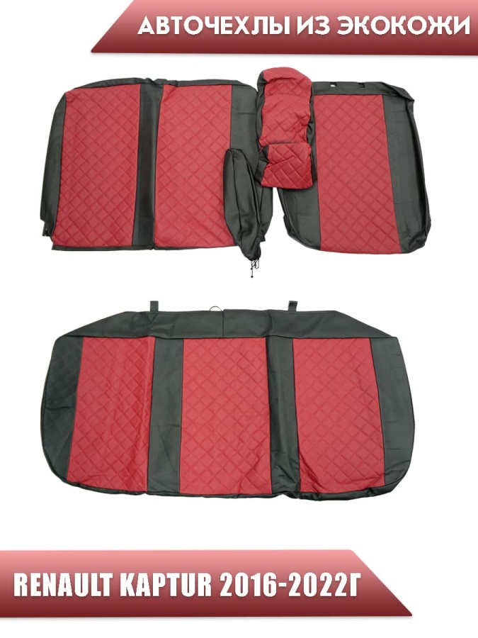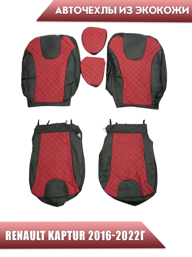 Авточехлы Renault Kaptur Рено Каптур 2016-2022г экокожа черная середина красная ромб
