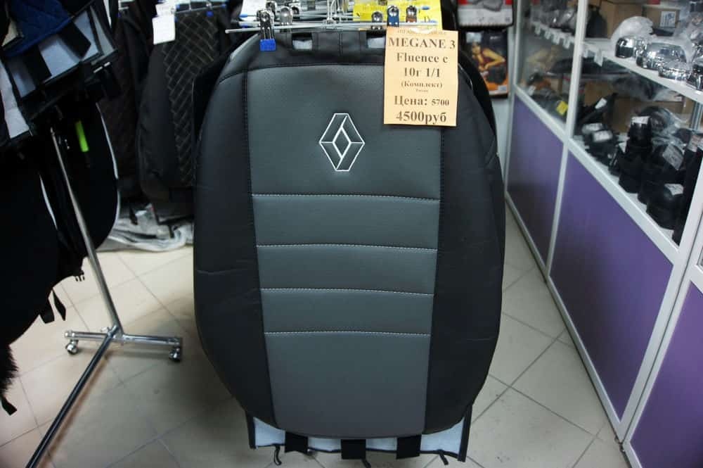 Авточехлы Renault Megane 3 Рено Меган 3 Renault Fluence Флюенс с 2010г 1/1 экокожа черно-серая