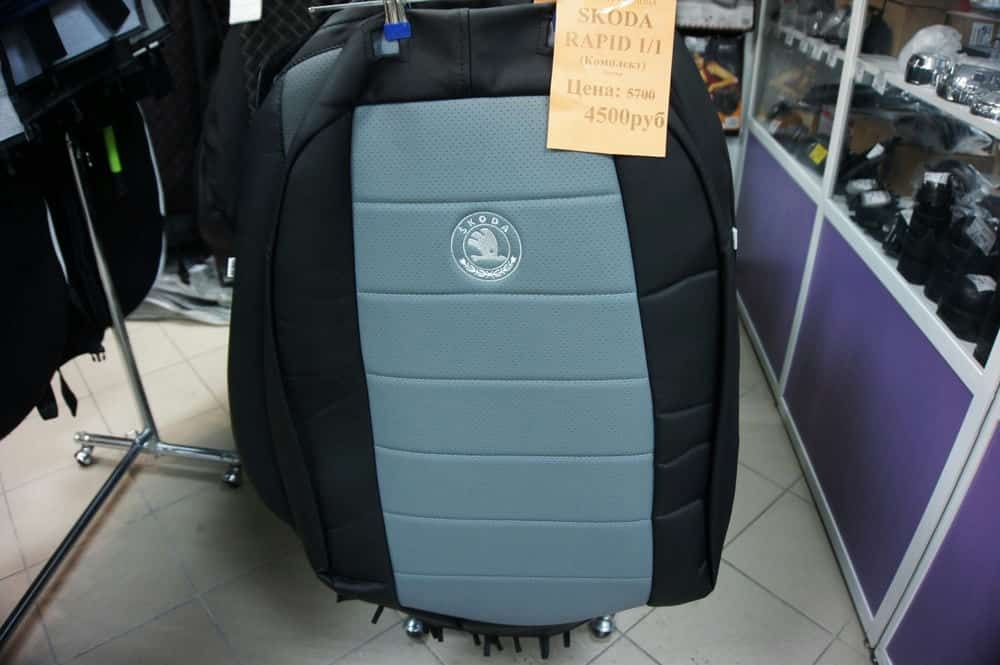 Авточехлы Skoda Rapid Шкода Рапид 1/1 экокожа черно-серая