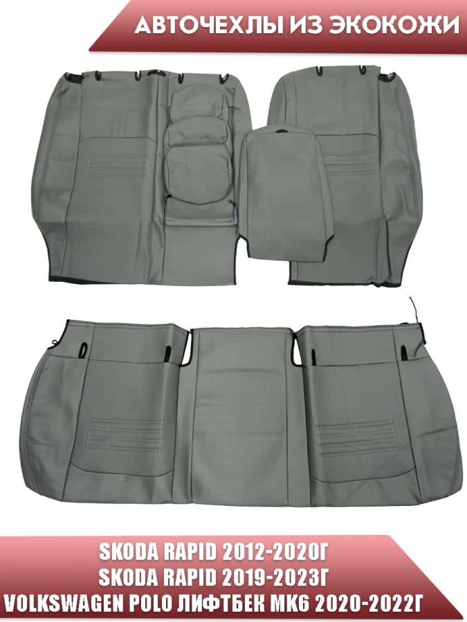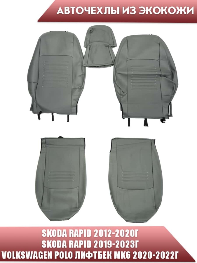 Авточехлы Skoda Rapid Шкода Рапид 2/3 Volkswagen Polo Поло лифтбэк с 2020г экокожа серая