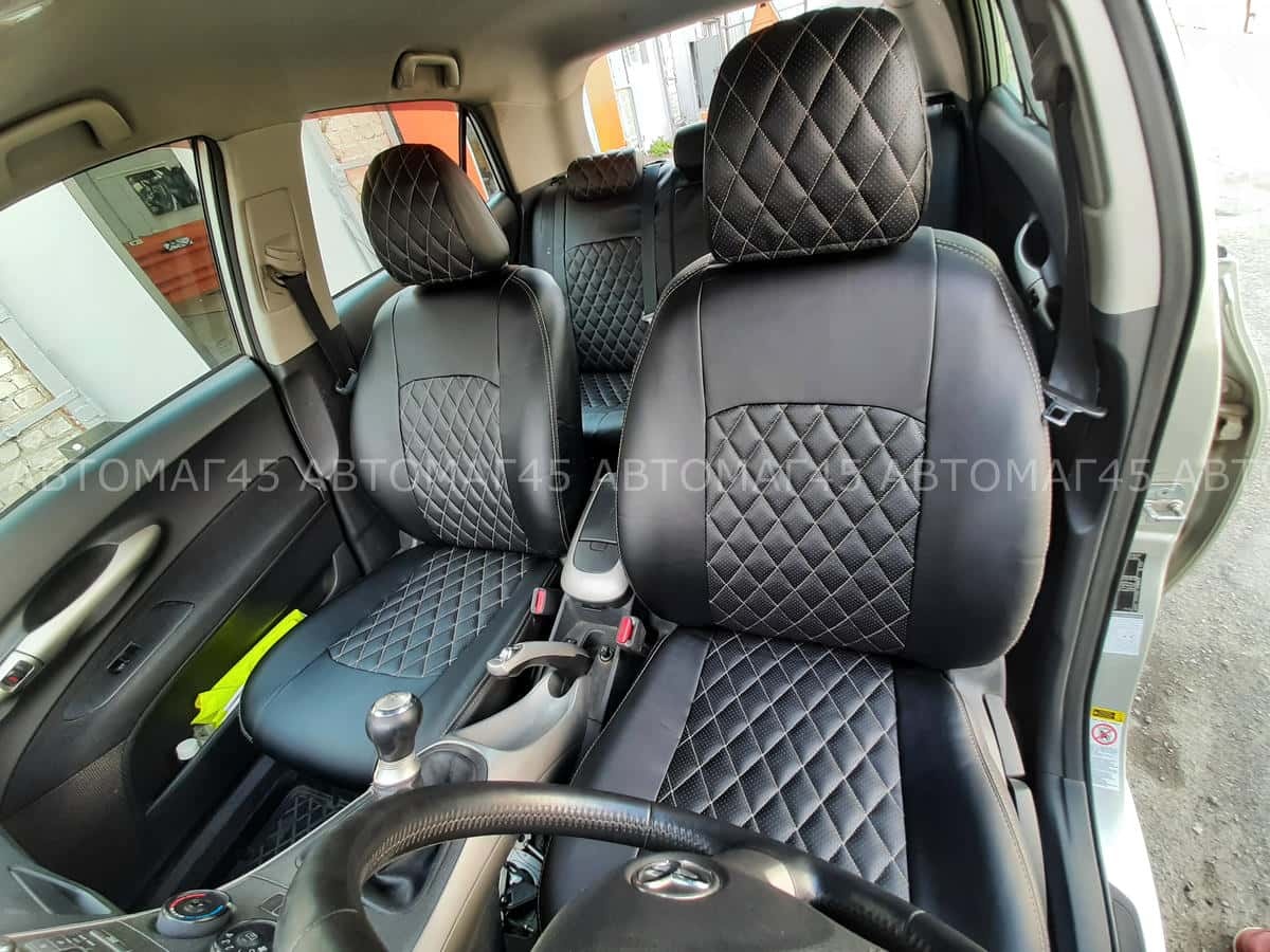 Авточехлы Toyota Auris Тойота Аурис 2006-2013г экокожа черная бежевая нить ромб