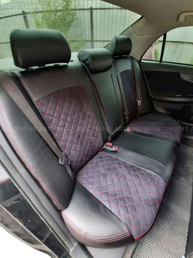 Авточехлы Toyota Corolla Тойота Королла 2007-2013г кузов 150 экокожа алькант черная крас.нить ромб