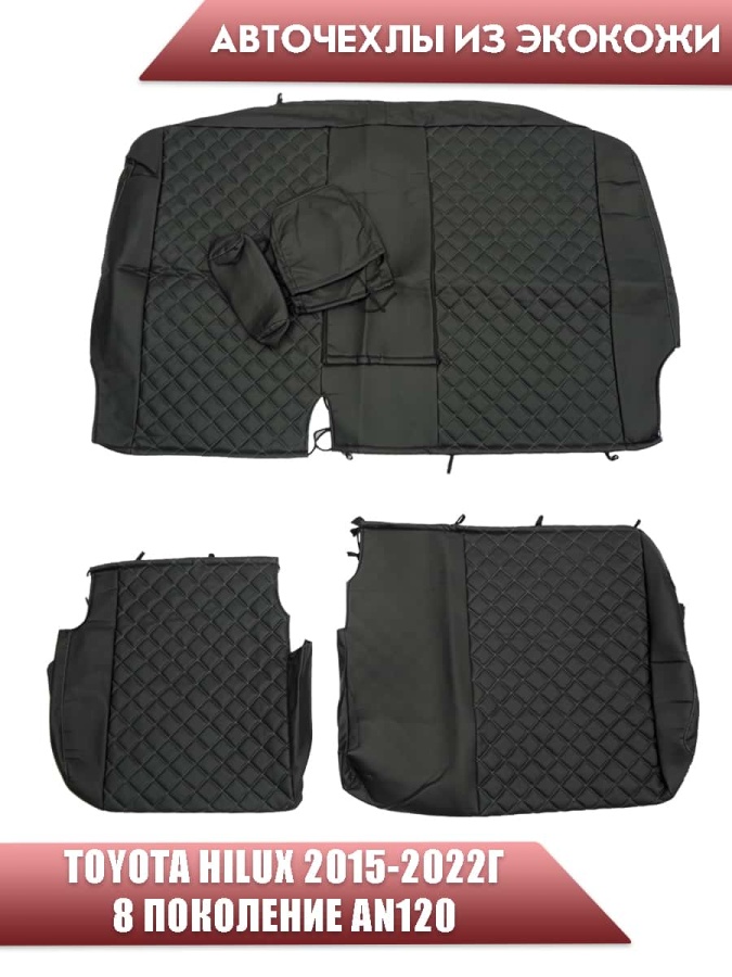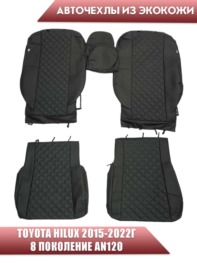 Авточехлы Toyota HILUX Тойота Хайлюкс с 2015г-2022г экокожа черная серая нить ромб
