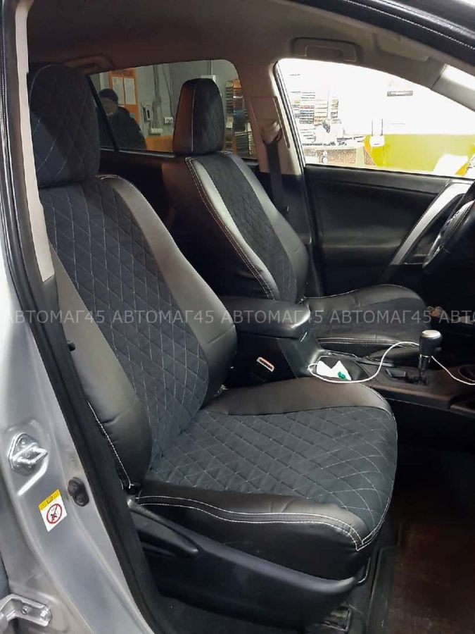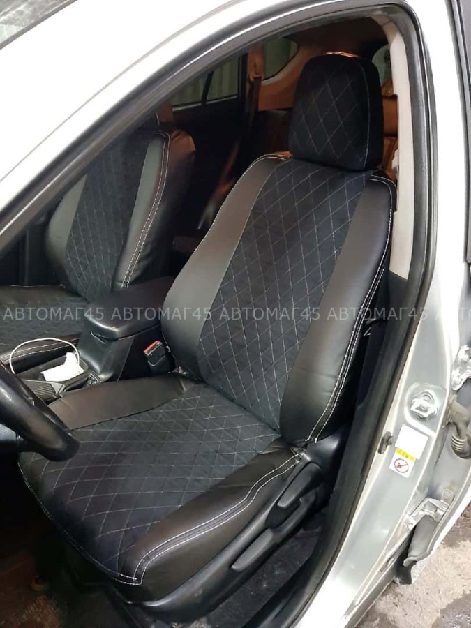 Авточехлы Toyota RAV4 Тойота Рав4 2012-2019г XA40 экокожа алькан черная серая нить ромб Maximal Vip