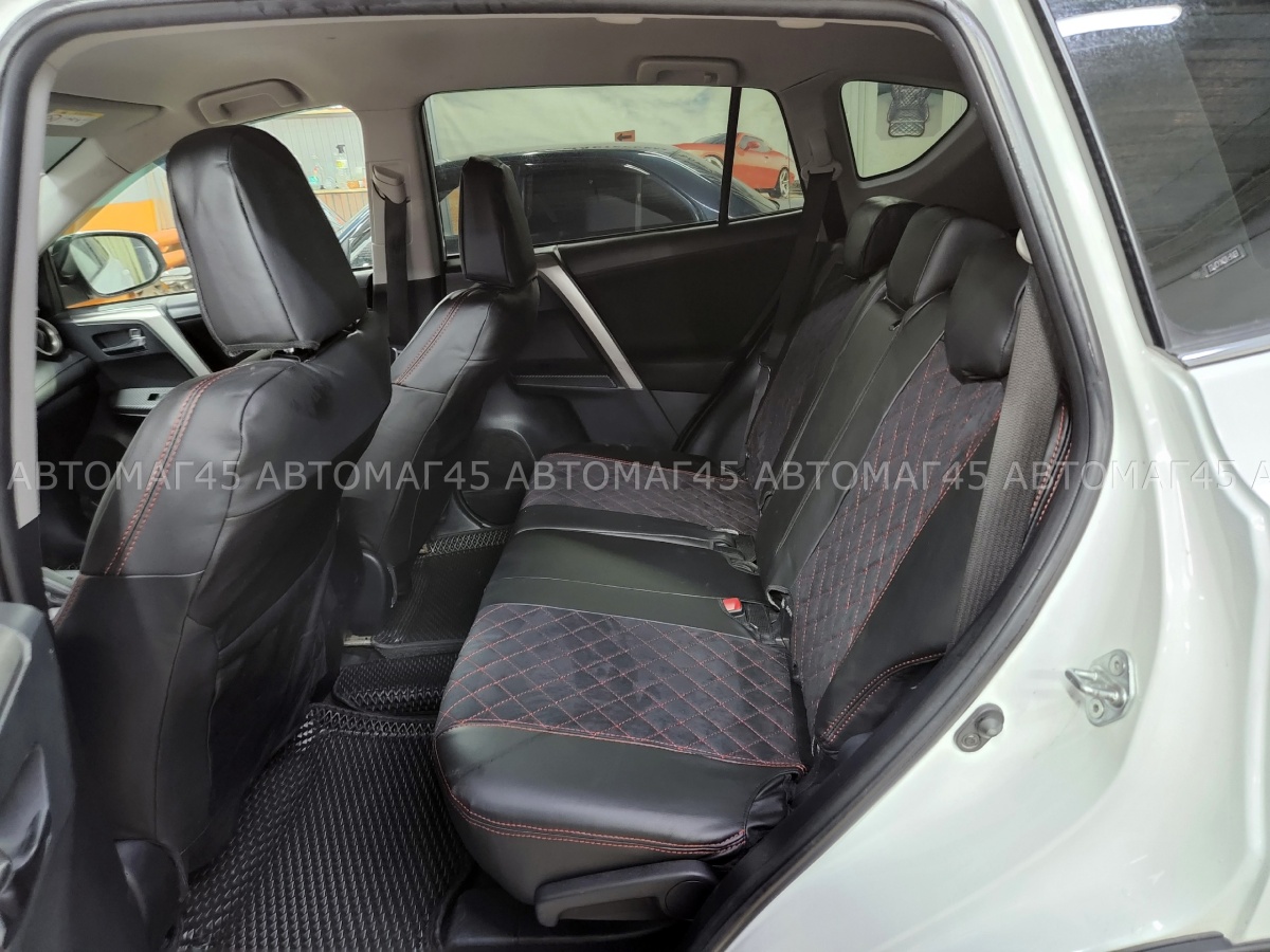 Авточехлы Toyota RAV4 Тойота Рав4 2018-2025г XA50 экокожа алькантара черная красная нить ромб