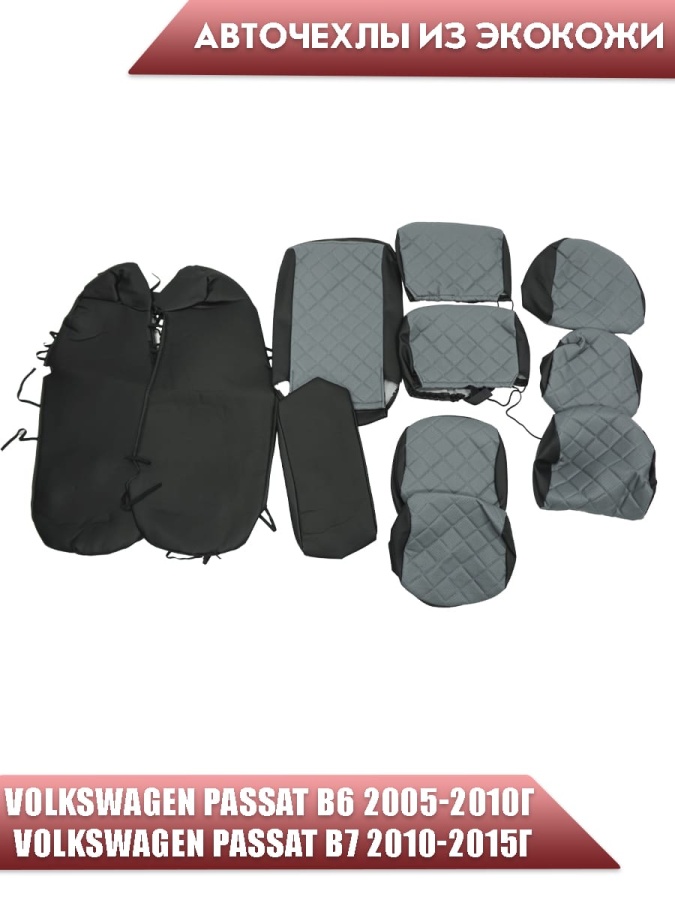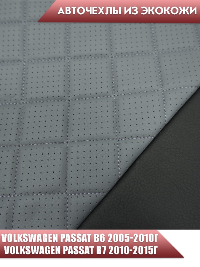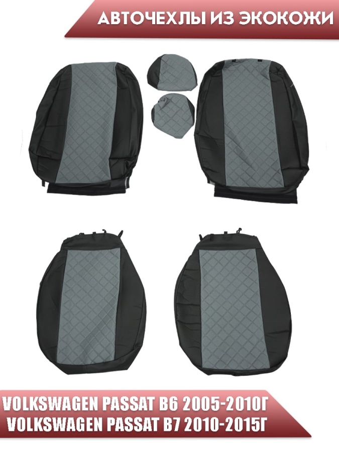 Авточехлы Volkswagen Passat B6 Пассат В6 2005-2010г Passat B7 10-15г экокожа черная серый ромб