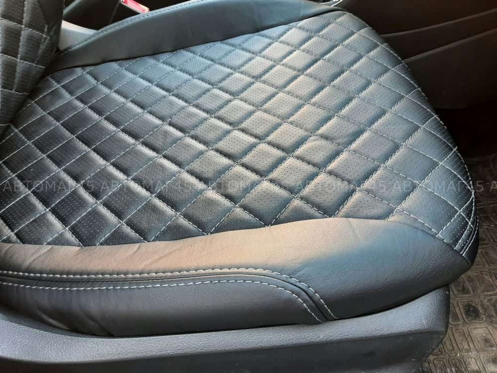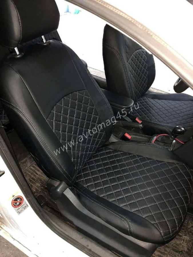 Авточехлы Volkswagen Polo Фольцваген Поло седан 2/3 2010-2020г экокожа черная нить серая Ромб