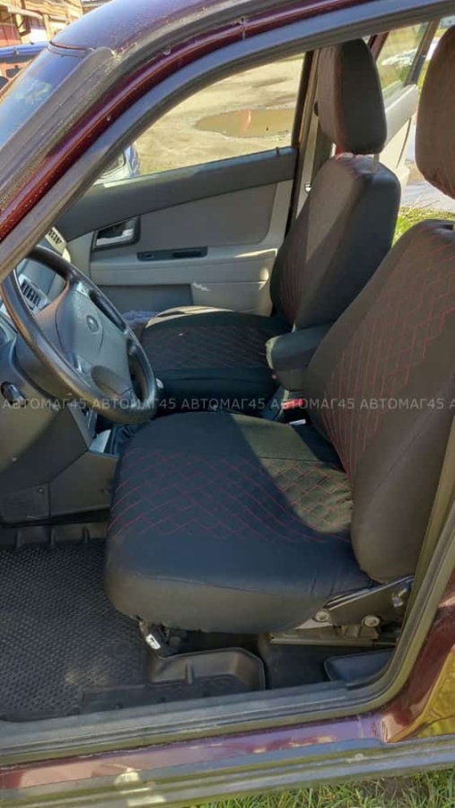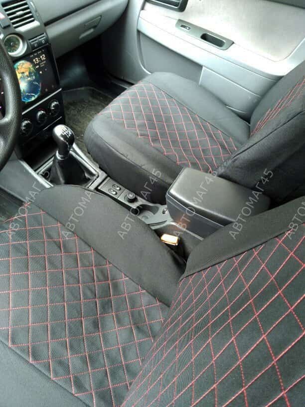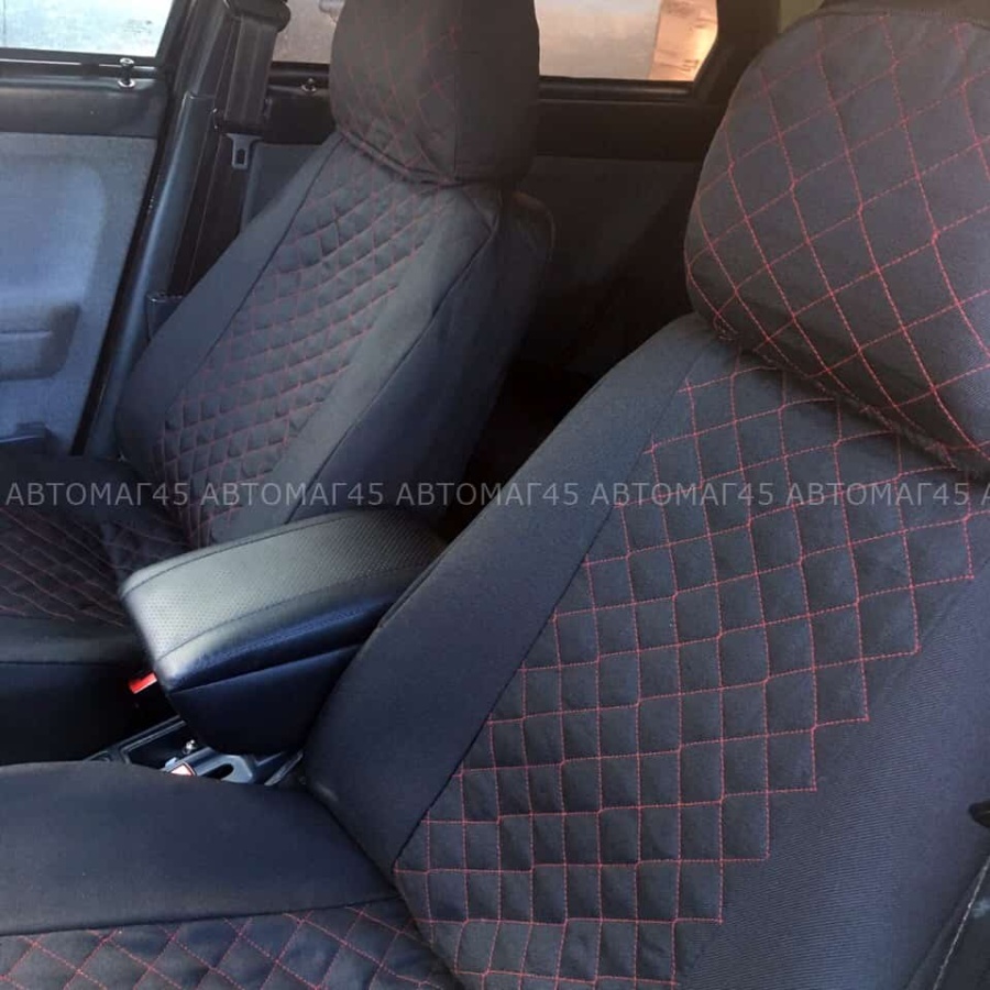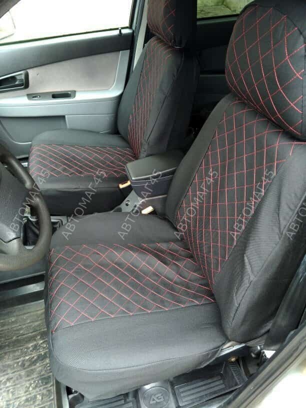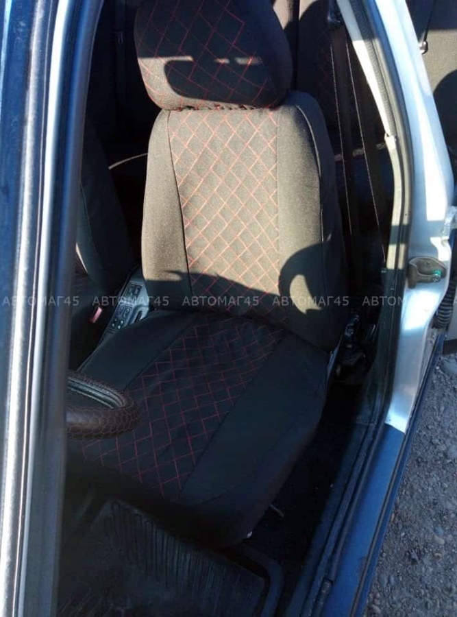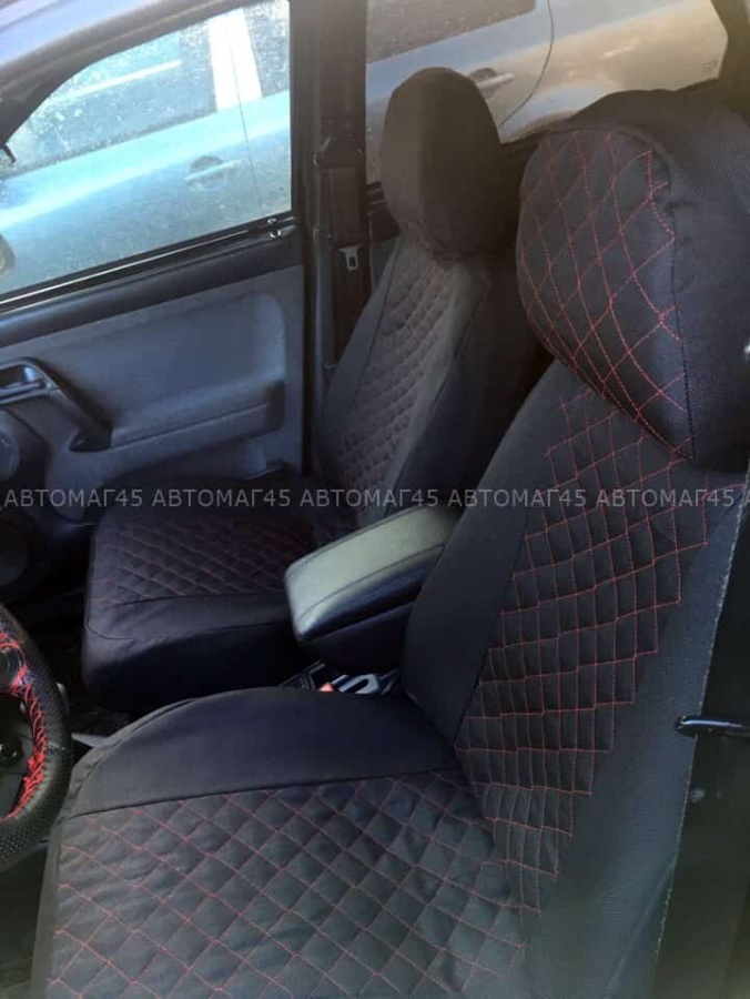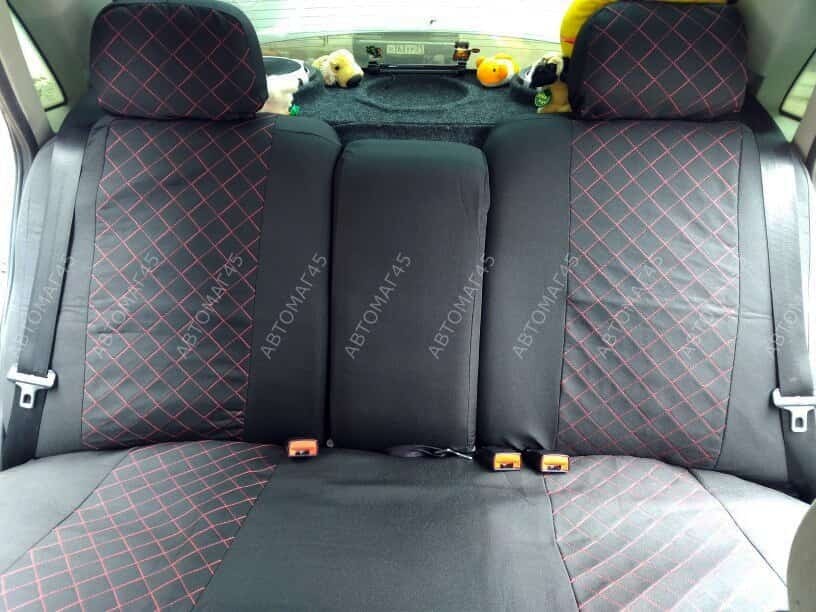 Авточехлы ВАЗ 2110 Приора седан до 2014г жаккард черный с красной ниткой ромб Барс