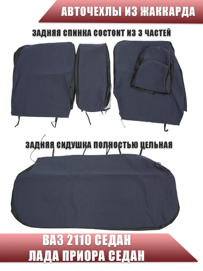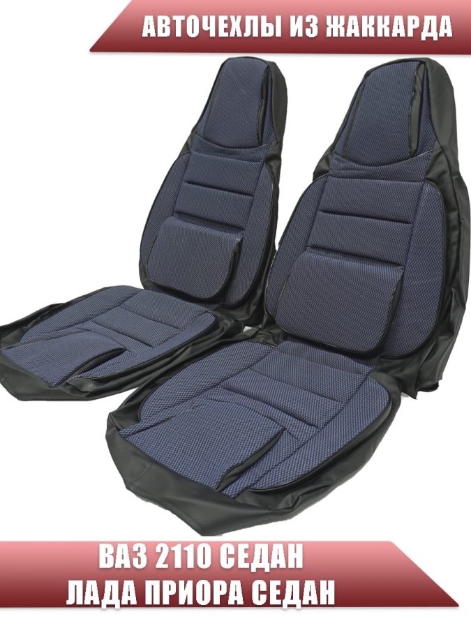 Авточехлы ВАЗ 2110 Приора седан до 2014г жаккард черно-синий